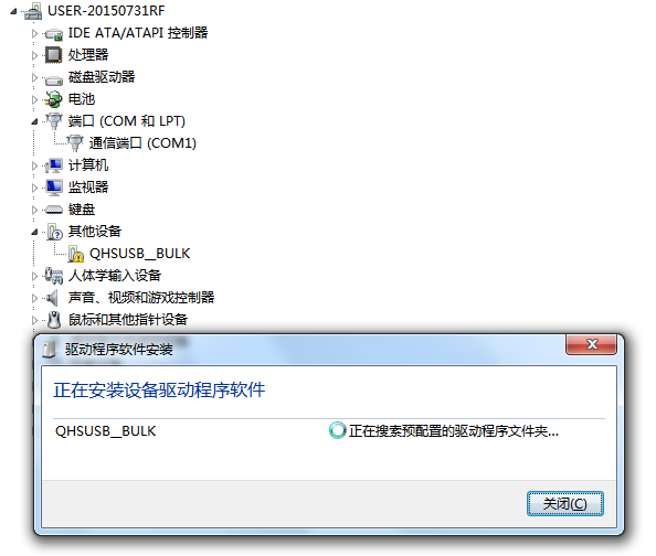 如果手机已经成功进入高通9008 线刷模式,那电脑上的设备管理器会显示「QHSUSB_BULK」 的设备需要安装驱动了。一般如果已经安装了文末提供的驱动程序,那这时只需耐心等待自动安装完成就可以了。 -